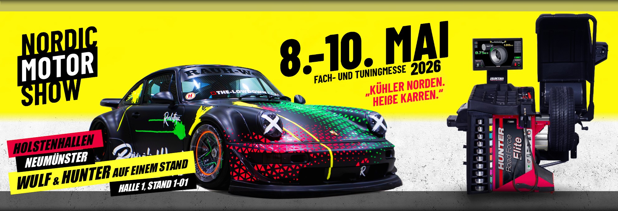 Die Nordic Motor Show ist Norddeutschlands einzige Fachmesse für Tuning und Performance und der Treffpunkt für alle, die Innovation, Fahrzeugtechnik und moderne Werkstattlösungen live erleben möchten. Vom 08. bis 10. Mai 2026 verwandeln sich die Holstenhallen Neumünster erneut in das Zentrum der norddeutschen Tuning- und Automotive-Szene – und wir sind gemeinsam mit unserem Partner Hunter live vor Ort.