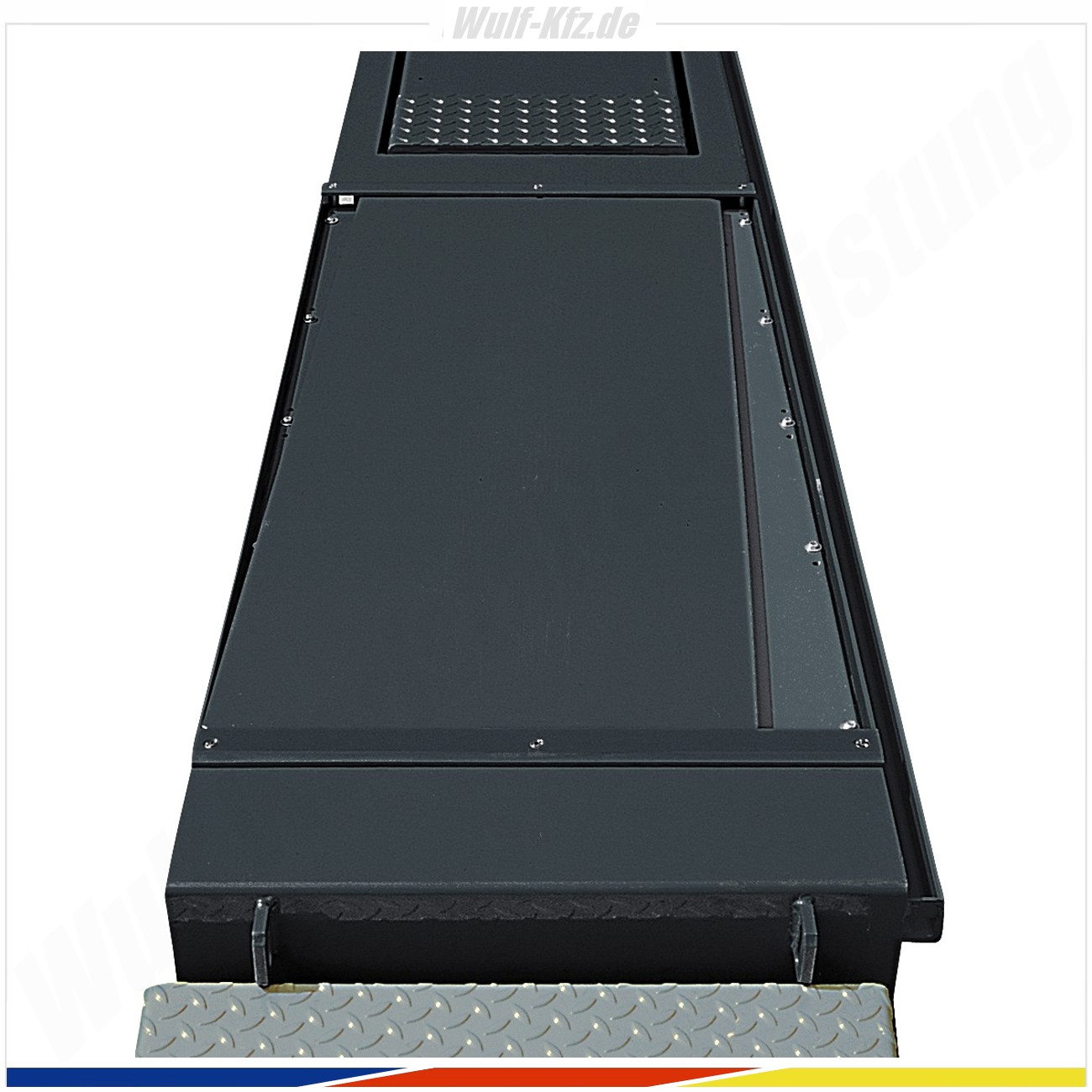 - Robuste Fahrschienen: Lange, massiv ausgeführte Fahrbahnen gewährleisten maximale Stabilität – auch bei Arbeiten an großen und schweren Fahrzeugen
