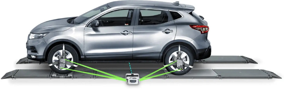 Wir empfehlen für ein absolut präzises Messergebnis den Einsatz einer 4-Säulen-Hebebühne oder einer Auffahr-Scherenhebebühne. Andere Hebebühnenarten können grundsätzlich ebenfalls verwendet werden – sie sind also möglich, aber nicht zwingend ideal. Uns ist wichtig, dass Sie am Ende ein 100%ig perfektes Ergebnis erhalten, und mit den genannten Bühnenarten lassen sich die besten Voraussetzungen dafür schaffen.