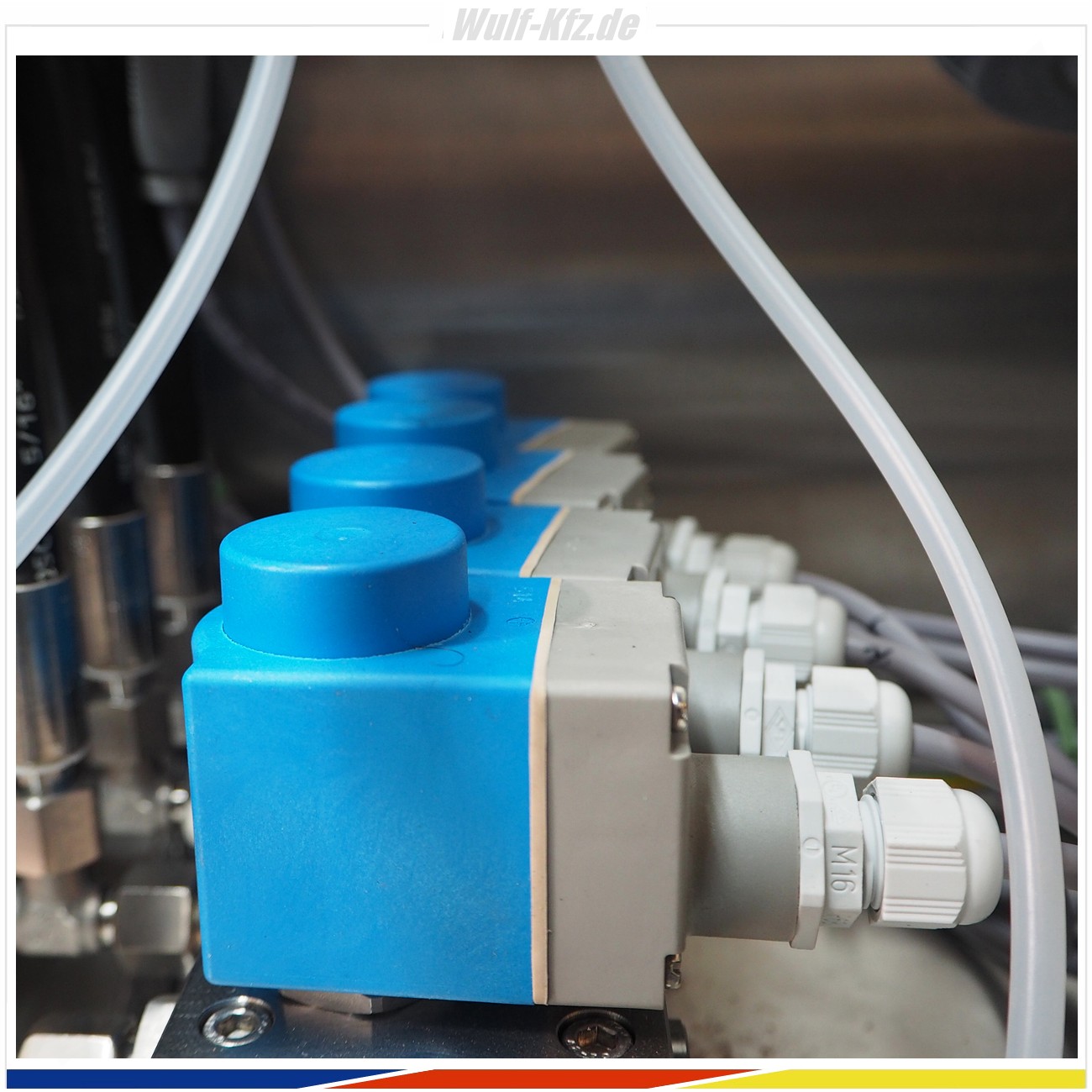 Die Maschine arbeitet ohne mechanische Waschkomponenten wie Bürsten oder Granulat und vermeidet dadurch Beschädigungen an Lack und Felge. Die automatische Prozesswasser-Neutralisation sorgt für eine besonders umweltfreundliche Radwäsche bei gleichzeitig sehr geringem Wartungsaufwand. Die Steuerung erfolgt über eine Siemens SPS, vier Reinigungsprogramme sind bereits vorkonfiguriert.