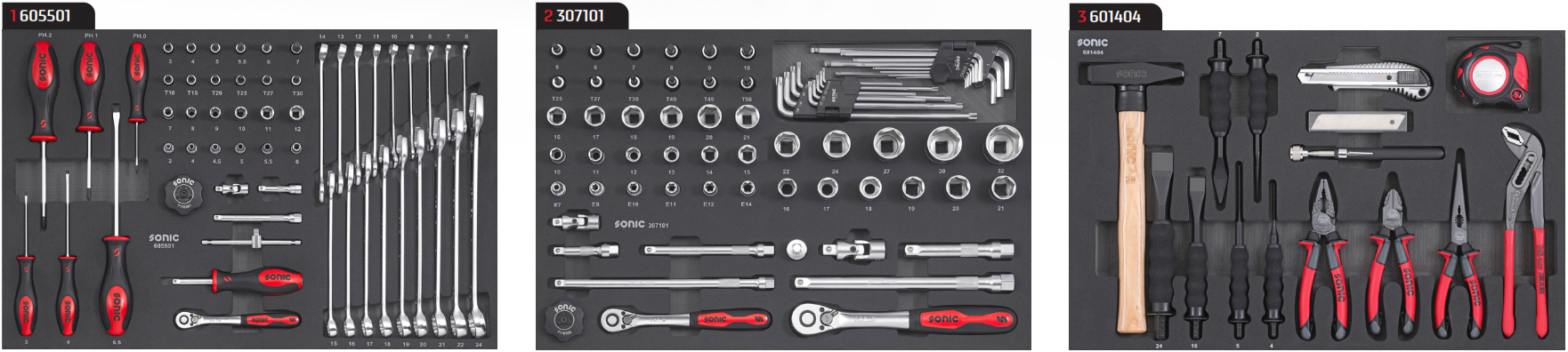1x Sonic Kombinations- und Schraubenschlüsselsatz 1/4" SFS-M 55-tlg. - 605501